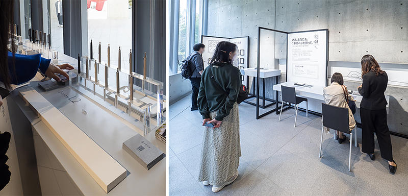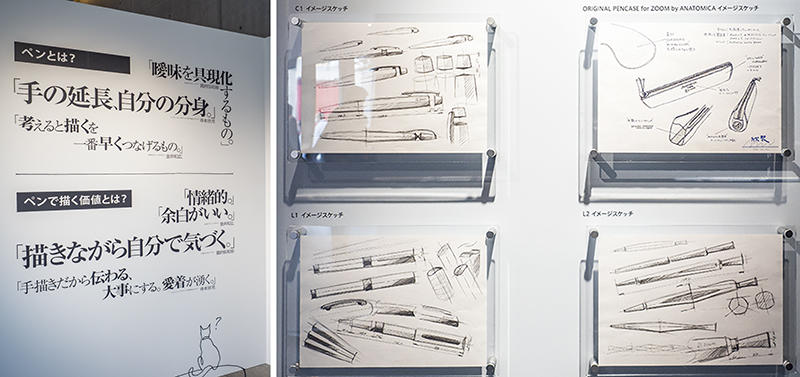 会場では、「ANATOMICA」のデザイナー、寺本欣児氏をコラボレーションクリエイター に迎え、「ZOOM」のプロダクトデザイナー國府田和樹氏、グラフィックデザイナー金井知広氏とプロダクト開発における「ペンで描く価値について」の特別鼎談をもとにした展示を行っているほか、ペンから生まれたアイディアが実際の製品として形になっていく過程を、プロジェクションマッピングで追体験できる展示などを実施。