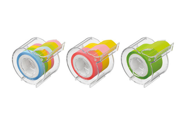 今回のリニューアルは、フィルム素材をポリ乳酸プラスチックからPET素材に変更した点が大きなポイント。素材を変更することによって、切りやすさが従来品に比べて格段に向上した。透過性があり貼った下地を隠さずメモできる特徴や、25mm・15mm・7mmの3種類のテープ幅、カラーバリエーションもそのままに、使い勝手を良くした。