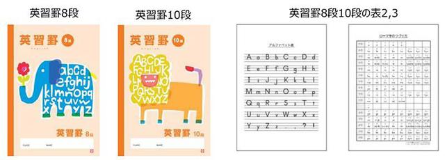 表紙は、英語をイメージしやすいアルファベットを用いたほか、小学校5・6年生の使用を想定した動物のモチーフを採用するなど、“小学生がはじめての英語に楽しく取り組める”学習帳をイメージしてデザインされている。また、表2,3には「アルファベット表」と「ローマ字のつづり方」を掲載。