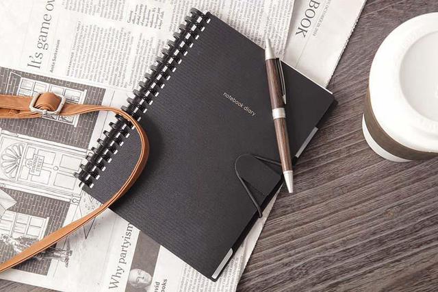 「ノートのように使えるダイアリー2019」は、開閉式とじ具が付いたリングノートタイプで、中のリーフの差し替えが簡単にできるのが特長。方眼リーフが28枚入っているので、ダイアリーとノートを別々に使用している人には携帯しやすく、鞄の中でもかさ張らない。PP製の白のインデックスシートとペンホルダーが付属した透明のオープンポケット付き。インデックスシートは上下にあるフックをリングに引っ掛けて取り付ける仕様なので、とじ具を開くことなく簡単に差し込む位置を変更できる。商談や打合せ時など、周りの目が気になる場合は書いた内容を隠す「目隠し」としても活用できる。また、オープンポケットにはペンのクリップ部分が差し込めるペンホルダーが付いており、ペンは表紙の開きを防ぐゴムバンドでしっかりホールドするので安心して持ち運べる。
