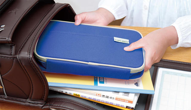 大容量でありながら、軽量で整理がしやすいのが人気の「トップライナーシリーズ」に、さらに幅広で収納力がアップしたBIGサイズ。家庭で散らばりがちな文具をこれ1個で管理できる。厚さは普通の筆箱と同じなので、そのままランドセルにすっぽりと入れることもできる。表にもポケットがあるのでよく使うメモや定規が入り、ペンホルダーが取り外せるので用途によって使い分ける事ができる。ものが飛び出さないフラップと、中のものが見やすいメッシュポケット付き。大きなものはゴムで固定して中で動くのを防ぐことができる。