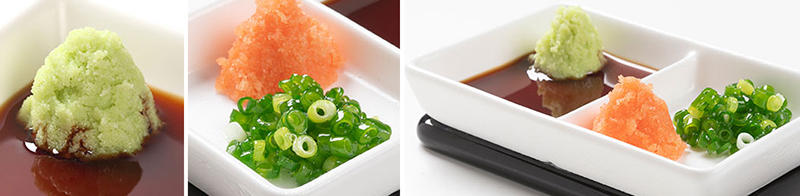 新製品は、職人が丁寧に1つ1つ作り上げた、Made in JAPANクオリティの食品サンプルスマホケース。居酒屋や和食店でよく見かける「薬味皿」を食品サンプルでリアルに再現し、お刺身に必須な「わさび」と「醤油」、お鍋のお供「もみじおろし」と「ネギ」を薬味皿に揃えた。わさびにしみ込む醤油や、ネギの絶妙な色合いなどのディテールに、職人のこだわりが感じられる。
