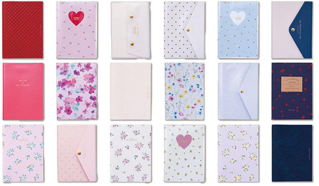 (写真上:下段左から)B6正寸マンスリー ホール・ハート(全3色)同1,000円/A5正寸マンスリー ホール・ハート(全3色)同1,300円/B6正寸マンスリー ホール・ハート・ガーリー(全3種)同1,000円/B6正寸マンスリー ホール・ハート・フラワー(全3種)同1,000円