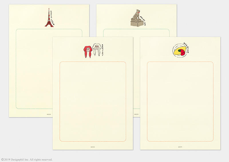 今回は、見ているだけでほっこり幸せになるご当地モチーフを描いた「東京柄」「京都柄」「福岡柄」の3柄が新たにラインアップに加わる。東京タワーや忠犬ハチ公像、京都の五重の塔や抹茶パフェ、福岡の屋台やとんこつラーメンなど、それぞれの地域の象徴的な場所や食べ物、アイテムなどをワンポイントであしらった。便箋は、これまでの柄とは異なり、初めて無罫タイプを採用(上写真参照)。罫線がないので、メッセージのほかにも訪問先のスタンプを押したり、思い出をイラストで描いたりと自由に使え、ひと工夫することでより思いのこもった手紙になる。旅先から送るのはもちろん、自分へのお土産にして旅の思い出を書き留めたり、郷土愛をこめて地元紹介を綴ったり、海外からの客へ旅の記念にプレゼントしたり。普段使いからインバウンド需要まで、多彩なニーズに応えるアイテムとなっている。