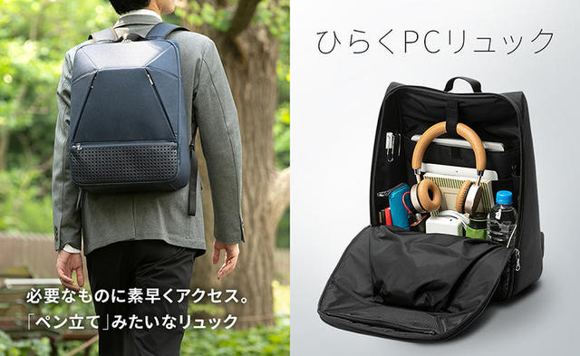 - 【新製品】ペン立てみたいなリュック「ひらくPCリュック」