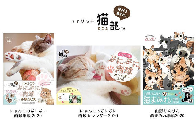 同手帳・カレンダーは、猫好きが集まるコミュニティ「フェリシモ猫部」とコラボした商品。今回「にゃんこのぷにぷに肉球手帳 2020」、「にゃんこのぷにぷに肉球カレンダー 2020」、「山野りんりん 猫まみれ手帳2020」がラインナップに加わった。