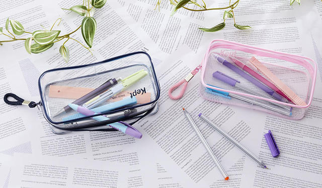ケプトクリアペンポーチは、透明度の高い厚手の生地と、背面メッシュによって中身が見やすいペンポーチ。