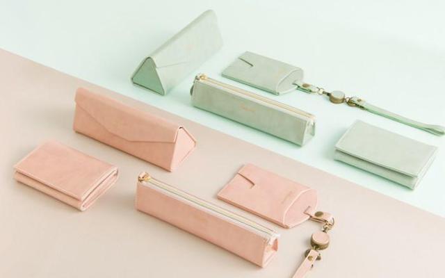 ペンケース(税抜1,400円)、パスケース(同2,200円)のほか、内側に4つの収納スペースがあり仕分けがしやすい名刺ケース(同2,200円)、折りたためて持ち運びのしやすいスマートなメガネケース(同2,000円)といった機能的で人気の高い4アイテムに、上品で個性的なカラーが仲間入り。ビジネスシーンに華やかさをプラスしてくれる。