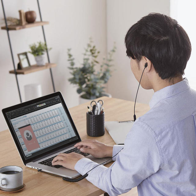 - 【新製品】カールコードタイプで絡みにくい! テレワークやオンライン学習にも最適なイヤホン