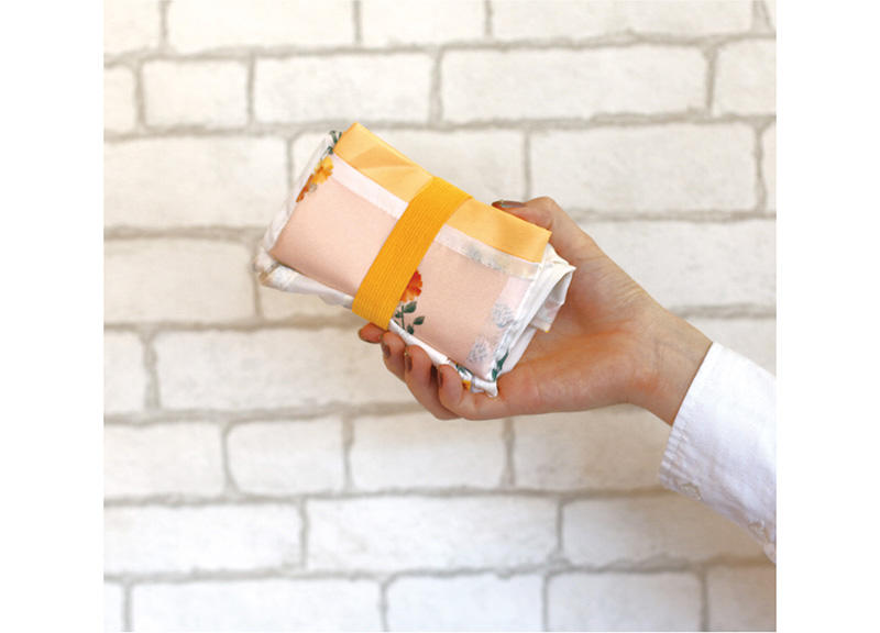 エコバッグ本体はゴムでコンパクトにまとめられる。メインバッグの容量は2Lペットボトルが6本入るほど。