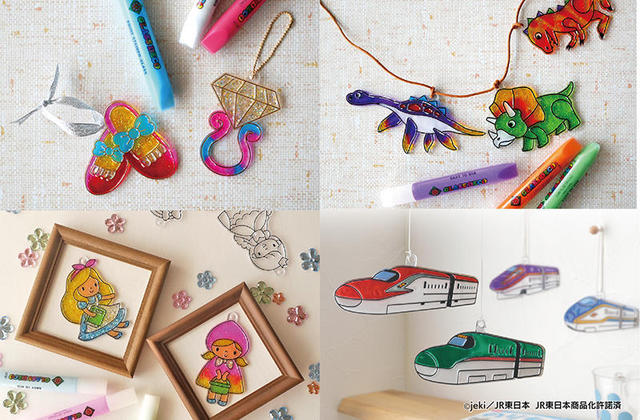 「グラスデコ オーナメントセット」は、付属の透明プレートに好きな色の「グラスデコ」を塗って乾かす(約8時間)だけで、カラフルで透明感のあるオーナメントが簡単に作れるキット。乾くとステンドグラスのように光を通しクリアカラーになる、のりと絵の具が合体した独特の絵の具を用いて作成できる。塗り絵感覚で子どもが手軽に楽しめるキットとして好評のシリーズで、現在4種類(きょうりゅう、ジュエル、メルヘン、新幹線)を取りそろえている。近年はおうち時間も増える中、付属のプレートでは足りず「もっと作りたい」というオーナメントの別売りリクエストも増えていることに加え、キットの残った絵の具の活用への配慮から、付属オーナメントを各種アイテムごとにセットにした単品を用意した。