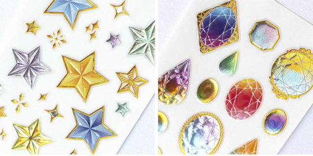 手紙に貼ったり封緘シールとして使ったり、また色紙などのデコレーションとしても使用できる。ポイントは、キラキラ(角度を変えるとキラリと光るのがかわいい)、ぷっくり(ぷっくりと膨らんだ加工が存在感を引き立てる)。