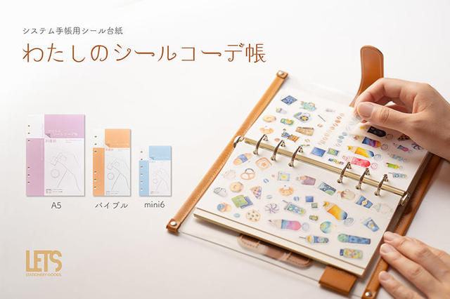 同社は2021年にバイブルサイズの「LETSクリアシステム手帳」を、2022年5月にはmini6サイズを発売。多くのユーザーから好評を得ているという。今回、より手帳ライフを楽むためのアイテムとして、シールを収集・ストックしておくためのシステム手帳用剥離紙「わたしのシールコーデ帳」を開発した。