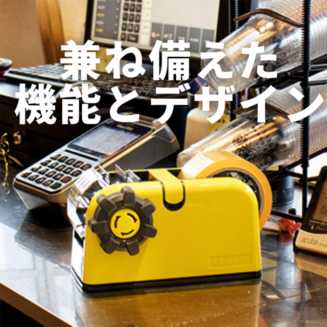 半自動テープディスペンサー「TENDO°テープディスペンサ―」は、家に眠っている梱包用テープを使い刃を替えるだけで好みの幅に大量カットするアイデア文具。1つのテープを使って無駄をなくしコストカットを実現。回転式のラバー製ダイヤルによって手首の負担も軽減する。安定感のあるボディはグッドデザイン受賞。テープのカット面が直線ではがしやすいのも特徴。1つで最大テープ容量80mまで対応なのも便利。秘密部分の内蔵式カッターは、カバーがついて子どもにも安心な設計となっている。付属の静音テープを使用すればより高いパフォーマンスを引き出す。