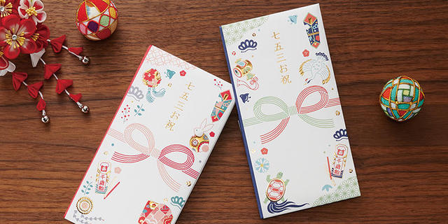 同製品は、表書きや絵柄に立体感のある箔押しエンボスを施し、華やかな雰囲気に仕上げている。また、本体に描かれているイラストは長寿や幸福を意味する縁起物がモチーフで、七五三を祝う気持ちを込めたデザインとなっている。