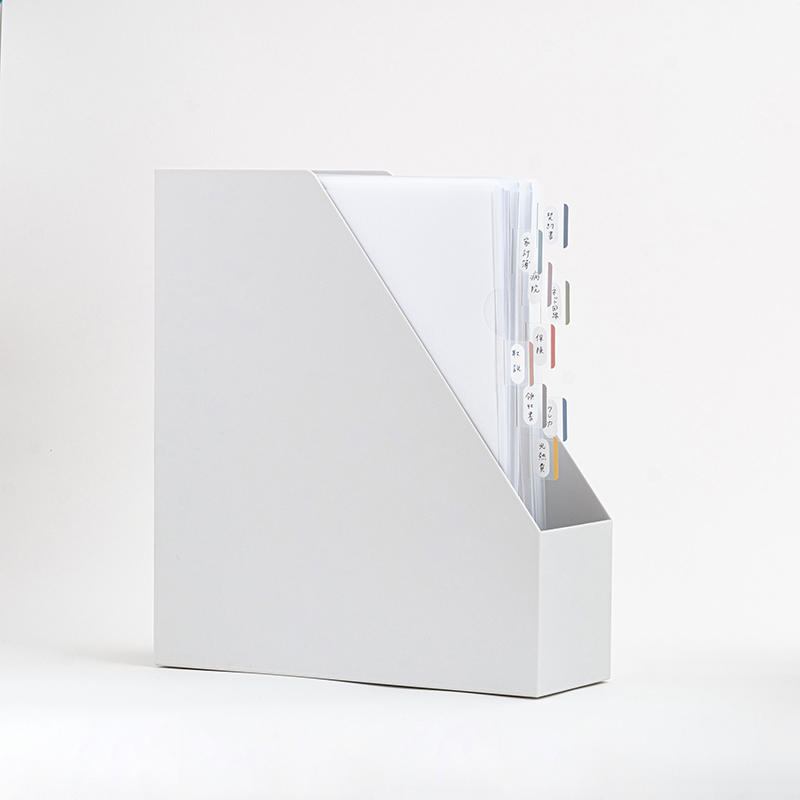 インデックスとしてしっかり目立ちながらも、圧迫感や存在感をおさえた透け感のある軽やかなデザインで、部屋やオフィスにもすっと溶け込んでくれる。クリアファイルを使うさまざまな場面で活躍する、新しいかたちのインデックスとなっている。