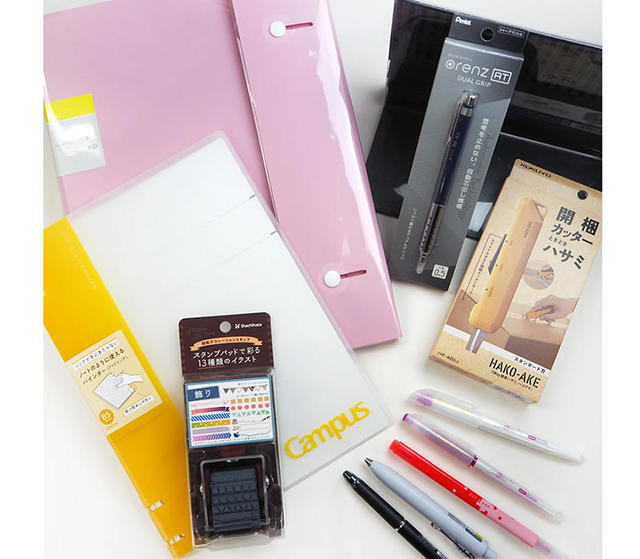 ベスト文具の中から、「1冊でも倒れないブックスタンド」「ユニボールワン P」「フリクションボールノックゾーン」「dot é pen(ドット・エ・ペン)」「回転デコレーションスタンプ」「カキコ ジャバラタイプ」「2Way 携帯ハサミ〈ハコアケ〉」「キャンパスノートのように使えるバインダー」「オレンズ ATデュアルグリップタイプ」「ILMILY Color two colorマーカー&ボールペン」の10点をセレクトしている。