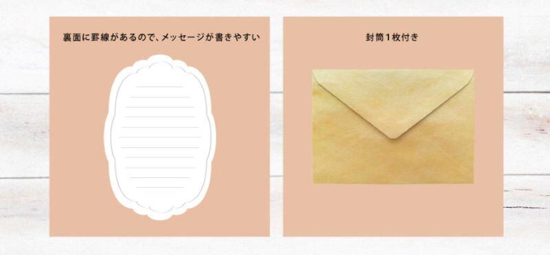 日比谷花壇監修の「フラワーメッセージカード」は、繊細な花のイラストが目を惹くメッセージカード。大切な人に贈っても、部屋に飾っても楽しめる上品なデザイン。裏面に罫線があるのでメッセージが書きやすく、封筒が1枚ついている。