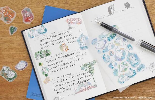 水彩画で描かれたムーミン谷のキャラクターたちが、ページを華やかに彩る「カラー転写シール」。紙になじむマットな仕上がりで、手帳や日記、手紙などのデコレーションに活躍する。