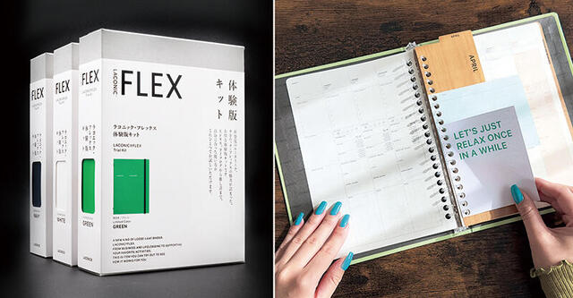 LACONIC(ラコニック)は、新感覚ルーズリーフ「FLEX(フレックス)」の魅力が詰まった、アイテム満載のお得な「FLEX体験版キット」を2025年4月21日から発売している。価格は税込3,960円。