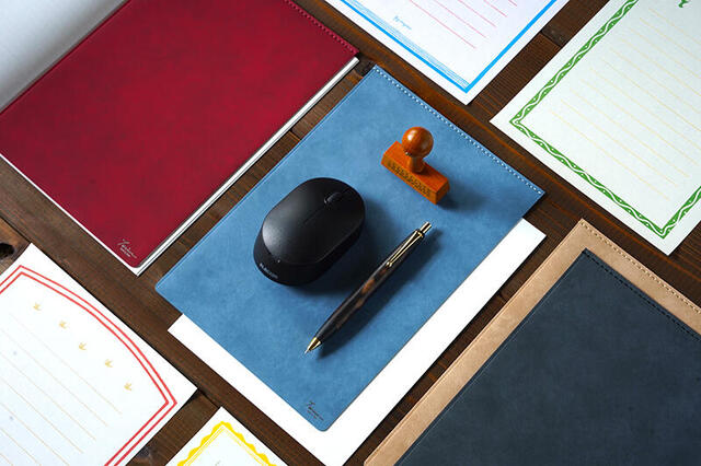 カフェなど筆記環境が不安定な場所での筆記がスムーズに行えるほか、マウスパッドやスタンプマットとしても活用できる。また、デスクマット裏には隠しポケットを用意。専用の吸い取り紙をはさみ入れ、スタンプの後やインク系のペンを使った後に余分なインクを吸い取って手帳やノートを美しく保つのに使ったり、自作のリフィルや推しの写真、ちょっとした紙文具を収納したりすることができる。