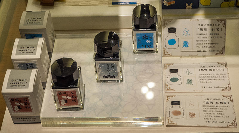 またご当地インクは、丸善で万年筆を取り扱っている店舗がある地域をイメージしたものを製作。第1弾となる今回は、「旭川 -41℃」「札幌 雪まつり」「盛岡 石割桜」の3種のインクを作った。このうち「旭川 -41℃」とは、旭川が日本観測史上最低気温の氷点下41度を記録したことにちなんで、そのときの寒さをイメージしたインクだという。各税込1,650円。